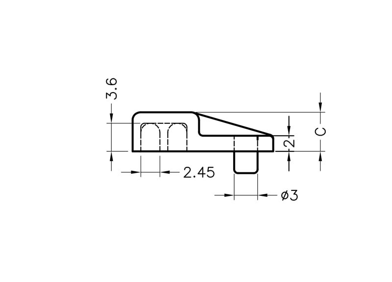 | Part no. | Material | Color | A T | B L | C W | Package |