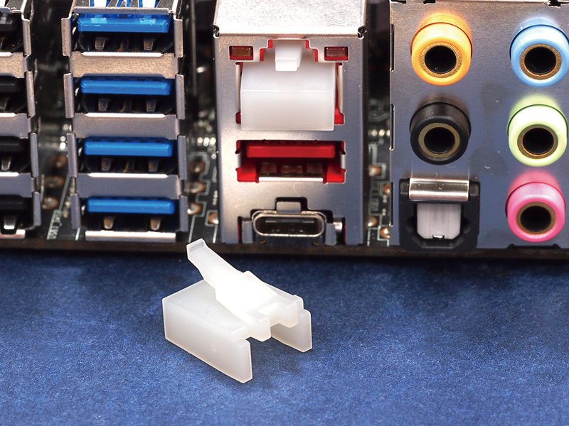 Self Locking RJ45 Port Dust Cover with release tab. Material Nylon 66. Color Natural/Black. Protect your RJ45 port from dust and damage with this dummy blind plug.