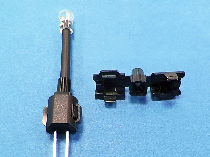 Snap-Fit Optical Fiber Mount. Nylon 66. Color Black. To be used in combination with Part# LEU-1 or LEU-2