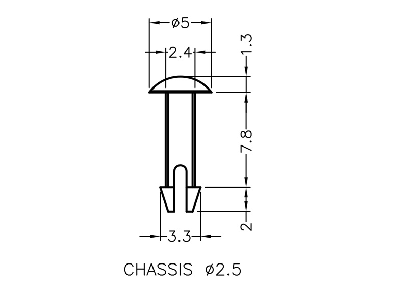Nylon 66 Lock Pin. Mounting hole dia. Ø 2.5mm. Color Natural/Black. Snap Lock Pins easily secure connectors to PCBs before wave soldering. They can also be used as push-fit panel fasteners.