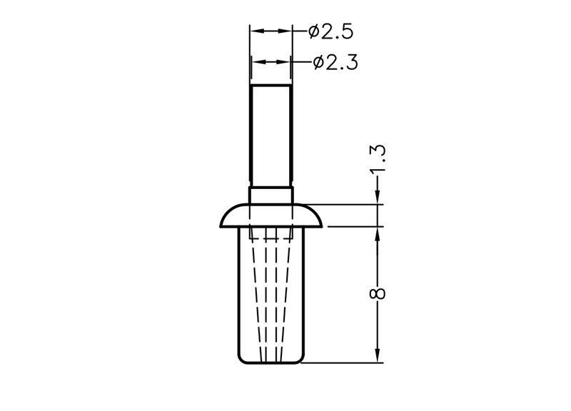 Expanding Drive Rivet without cap / headless design. Nylon 66. Color Natural/White/Black. Hole diameter Ø4.0mm. Panel Thickness 4.0mm.