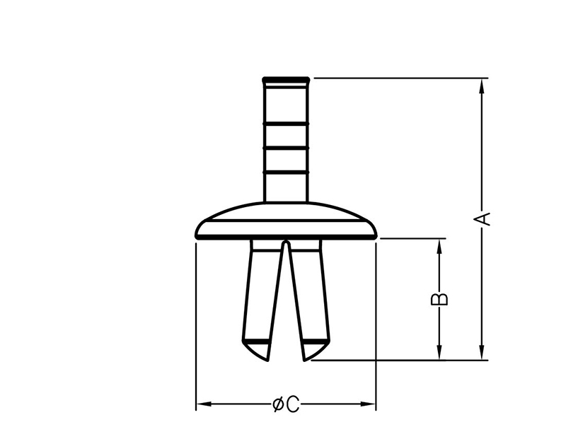Expanding Drive Rivet without cap / headless design. Nylon 66. Color Natural/White/Black. Hole diameter Ø6.0mm. Panel Thickness 2.0-7.0mm.