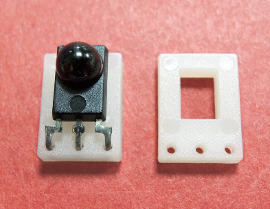 Infrared Receiver Horizontal Mount . This holder supports the photodiode, maintaining the pins at a 90-degree angle, and positions the phototransistor at a fixed PCB height.