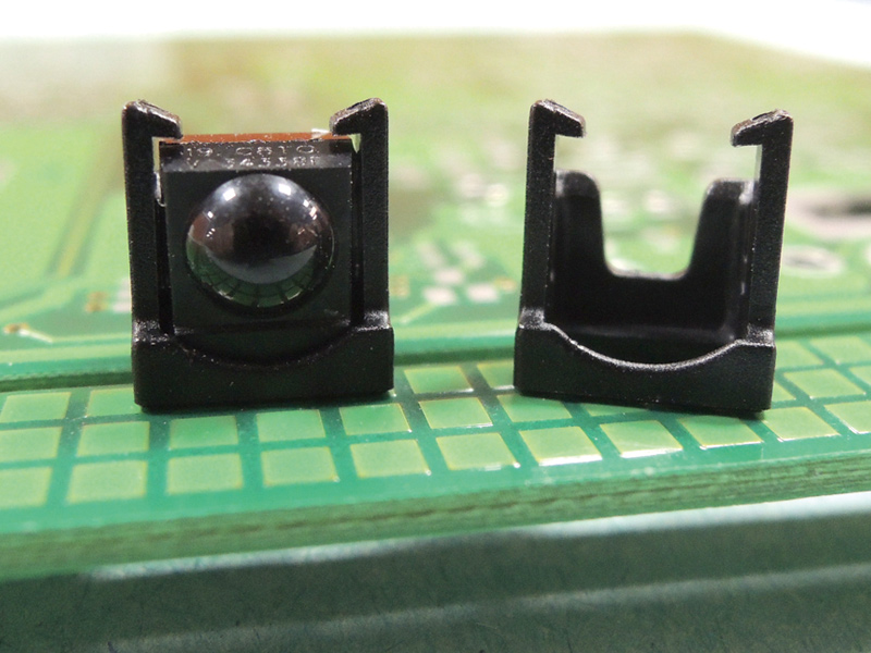 Infrared Receiver Mount. Spacer height 6.0mm. This holder prevents the photodiode pins from bending and positions the phototransistor at a fixed PCB height.