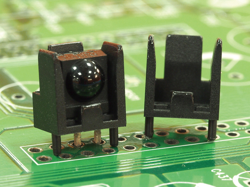 Infrared Receiver Mount. This holder prevents the photodiode pins from bending and positions the phototransistor at a fixed PCB height.