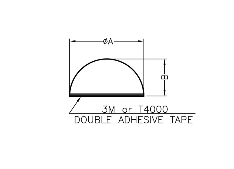 Self Adhesive Round Hemispherical Rubber Bumper Ø6.7mm height 4.2mm. Supplied on a Pad. Other materials Silicon Rubber, EPDM
