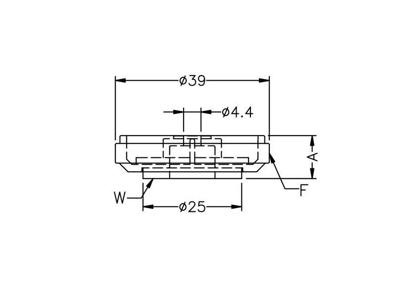 ABS Foot with Golden Aluminum Edge Ø39×10.7mm with EVA foam pad for to prevent sliding. Screwable by central Ø4.4mm hole. The Aluminum Covering gives a refined and elegant look