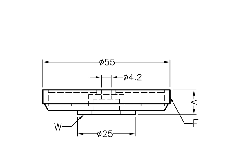 ABS Foot with Golden Aluminum Edge Ø55.0×10.7mm with EVA foam pad for to prevent sliding. Screwable by central Ø4.2mm hole. The Aluminum Covering gives a refined and elegant look
