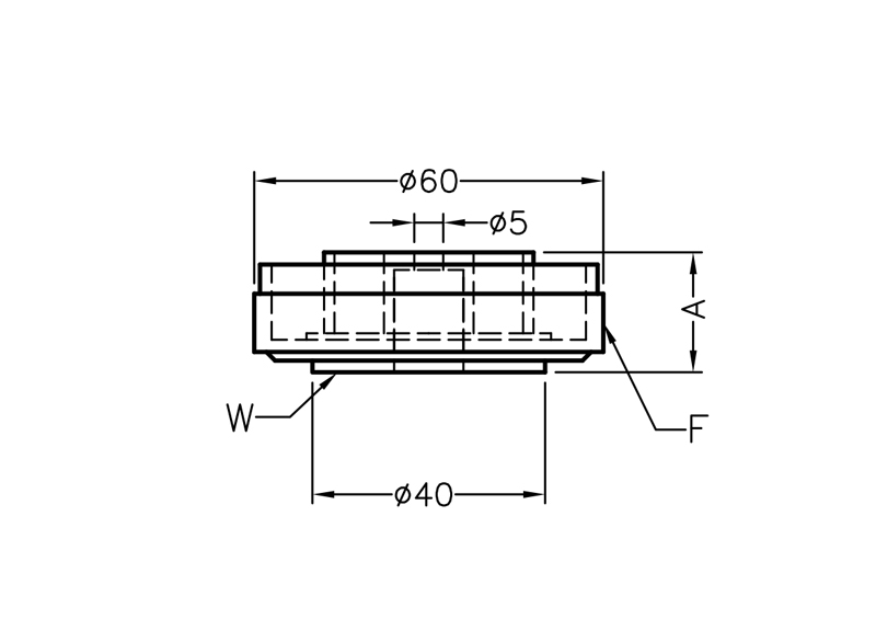 ABS Foot with Golden Aluminum Edge Ø60.0×20.0mm with EVA foam pad for to prevent sliding. Screwable by central Ø5.0mm hole. The Aluminum Covering gives a refined and elegant look