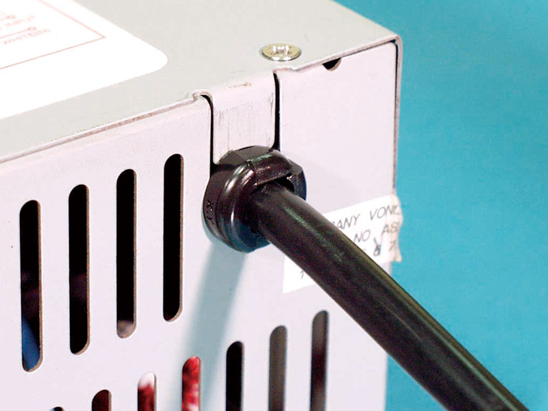 Strain Relief Bushing for Round shaped cable. Material Nylon 6/6 Black. For cable size Ø6.8-7.8. Panel Thickness 0.8-2.6mm. Hole Size (WxH)11.8×12.7mm. Integral spring guides cable gently, preventing sharp bends. UL recognized.