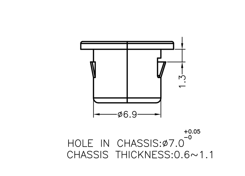 Strain Relief Split Bushing. Material Nylon 6/6 Black. Panel Thickness 0.6-1.1mm. Hole Size Ø7.0mm.