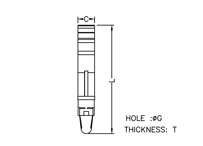 Snap Lock Round Elevated Cable Clip with Locking. Max. Bundle dia. Ø6.7mm. Mounting Hole dia. Ø4.8mm. Panel Thickness 0.8-2.0mm. Nylon 66. Color Natural or Black