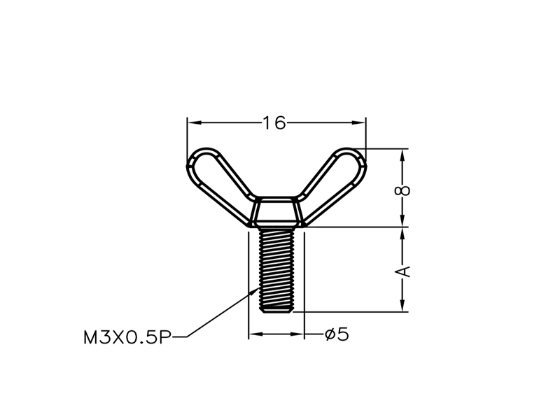 Wing Screw PA66 Metric M3 Wingspan 16mm Length 10.0mm. Wing Screws or Butterfly Screws are designed to be tightened and loosened by hand.
