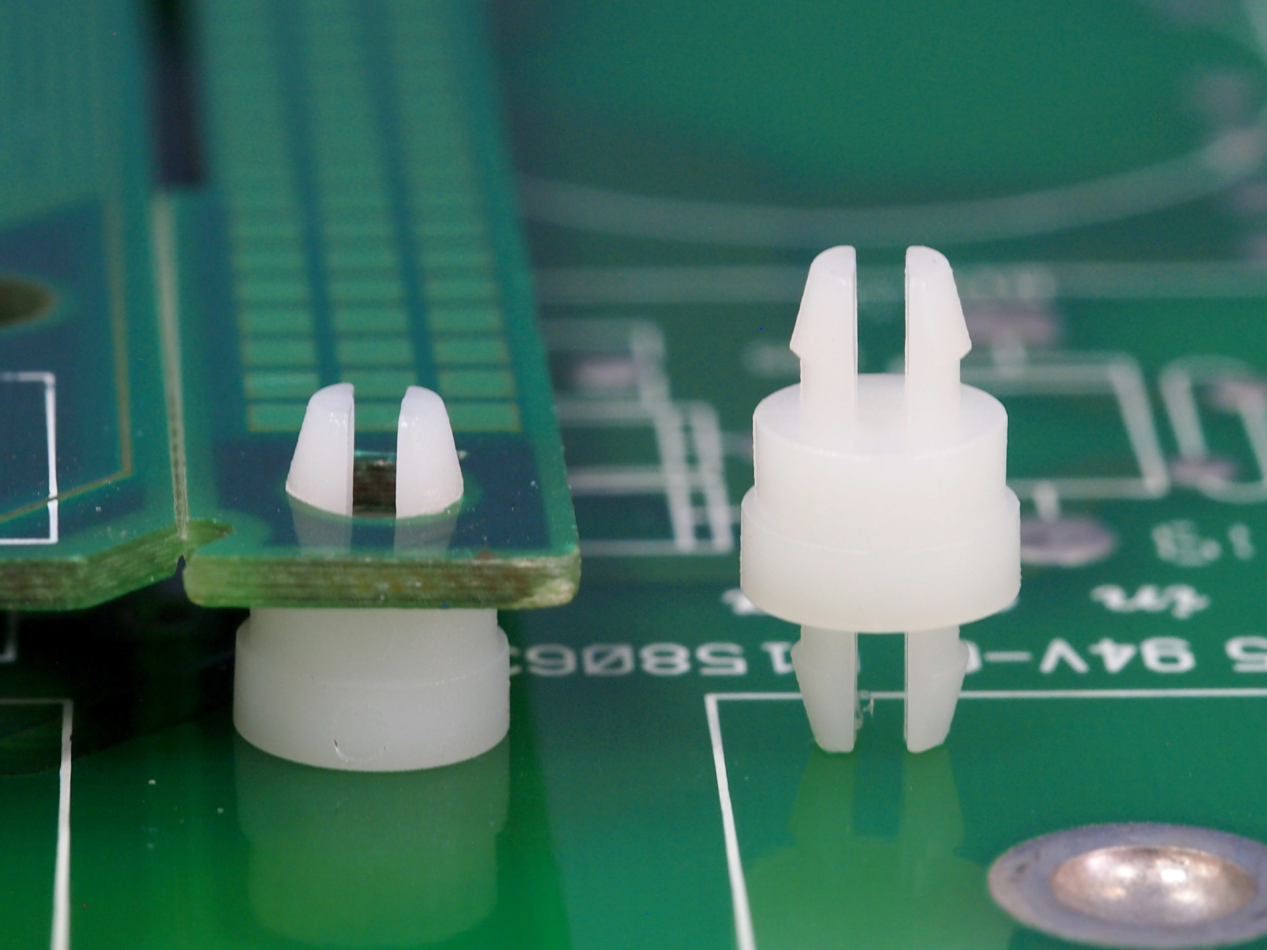 Spacer with extra wide support fits a panel top and bottom hole of 4 mm with a two prong snap lock. Spacer length is 4.8 mm.
