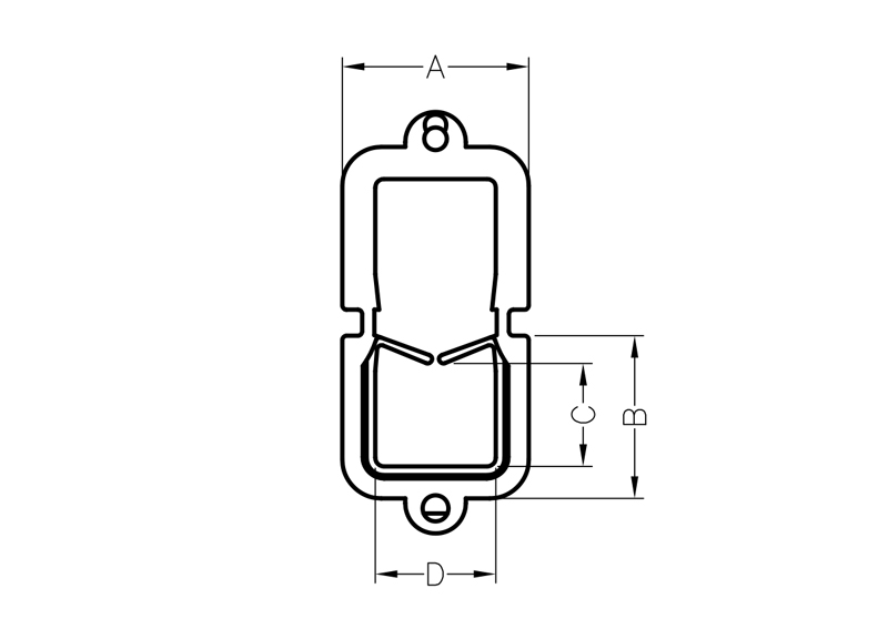 Edge protection snap-in cable mount (WxH) 14.0×12.3mm. Panel Thickness 0.8-2.0mm. Nylon 66. Color Natural and Black. Designed for edge panel mounting featuring a snap-in cable entry.