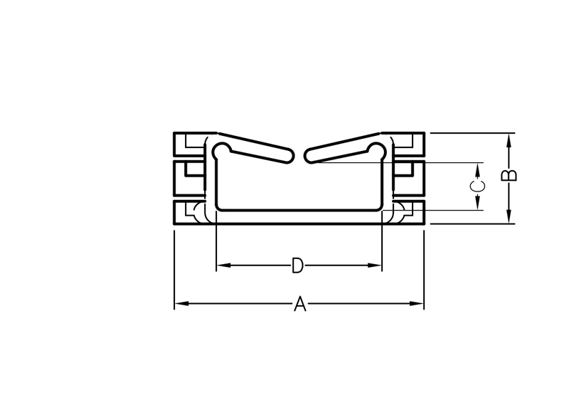Edge protection snap-in cable mount (WxH) 17.0×8.0mm. Panel Thickness 1.2-2.8mm. Nylon 66. Color Natural and Black. Designed for edge panel mounting featuring a snap-in cable entry.