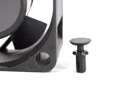 Snap Rivet. Black Nylon 66. Hole diameter Ø 2.6-2.7mm. Panel Thickness 2.5-3.4mm. This rivet has extendable legs that lock components into place with a simple push. No tools required.