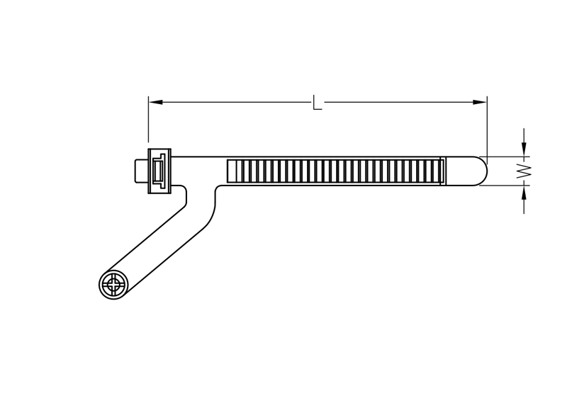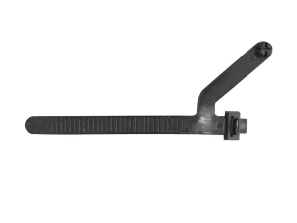 Hanking Tie Snap Lock Panel Mount Nylon 66 for organizing cables or hoses, offering flexible, adjustable fastening. Mounting hole Ø7.0mm. Length 107.0mm. Color Natural/Black
