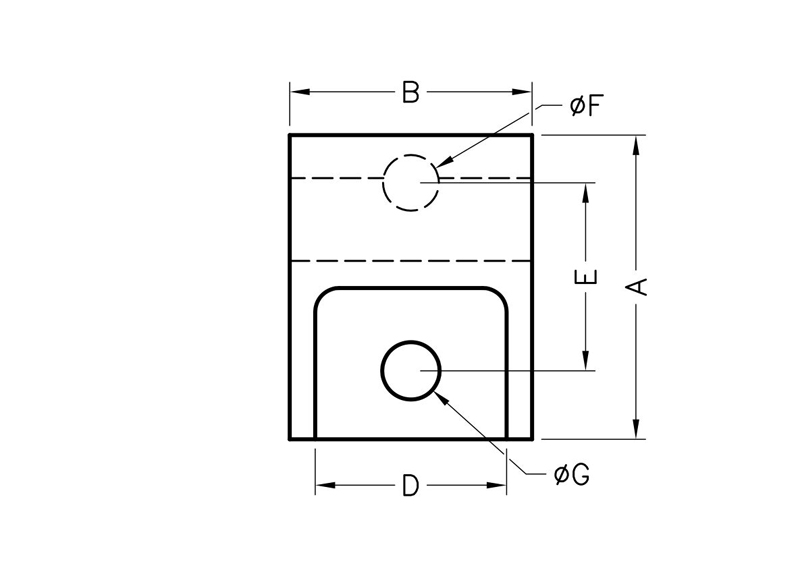 | Part no. | Material | Color | A ∅F | B A | C B | D C | E ∅G | Package |