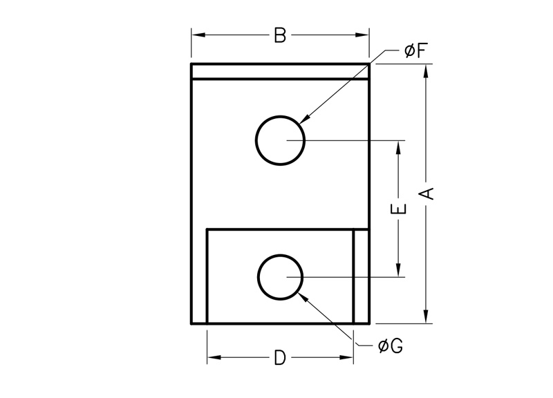 | Part no. | Material | Color | A ∅F | B A | C B | D C | E ∅G | Package |