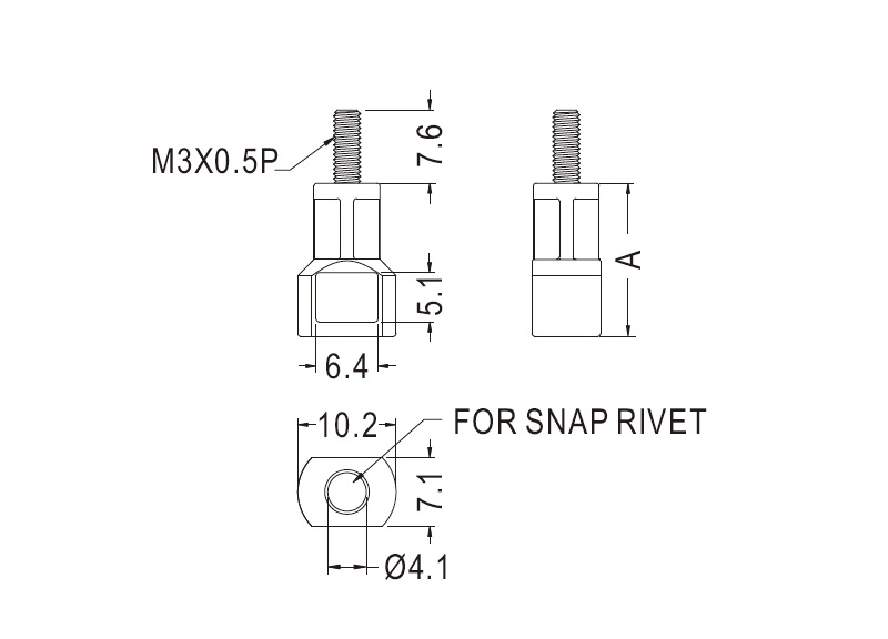 Threaded M3 PCB support rivet mount. To be used with our SR4 snap rivet series (sold separately). Spacer length is 19.1 mm.