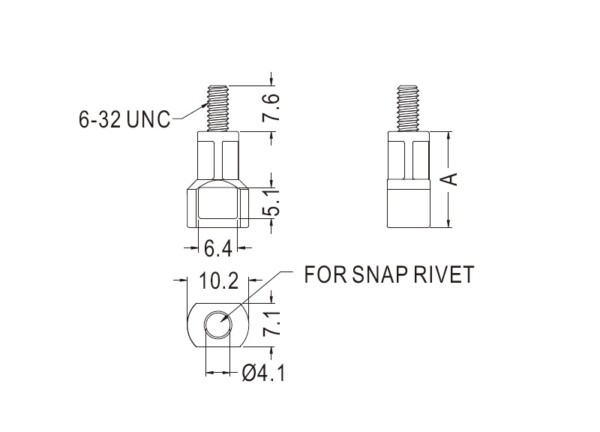 Threaded 6-32 UNC PCB support rivet mount. To be used with our SR4 snap rivet series (sold separately). Spacer length is 15.9 mm.