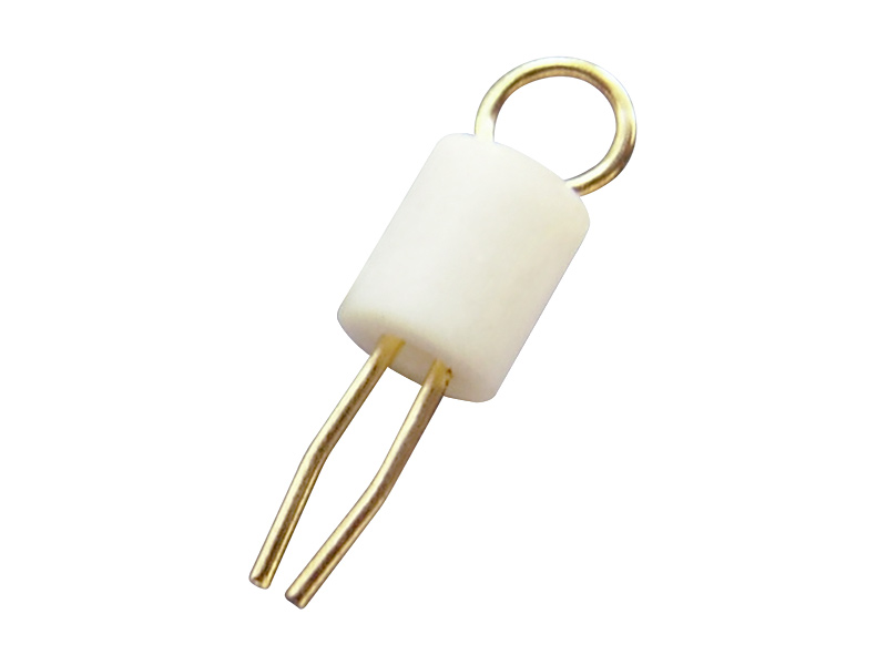 Ceramic White Color-coded thru-hole Test Pin with snap-in mounting and heat-resistant base, suitable for wave or reflow soldering. Gold Plated Phosphor Bronze Wire. Housing UL-94V0 Ceramic Material. Fits a Ø0.8-1.0mm PCB hole.