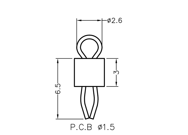 White Color-coded thru-hole Test Pin with snap-in mounting and heat-resistant base, suitable for wave or reflow soldering. Gold Plated Phosphor Bronze Wire. Housing UL-94V0 PBT Material. Fits a Ø1.5mm PCB hole.