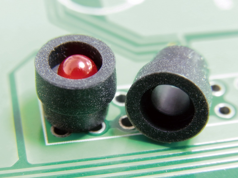 Silicone Rubbber Panel Front Mount LED cover for 3mm (T-1) LED. Height 5.45mm. Color Black