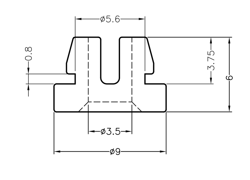 Round Silicone Rubber Foot Ø9.0×2.25mm Push Mount for Ø5.6mm holesize. Panel Thickness 0.8mm