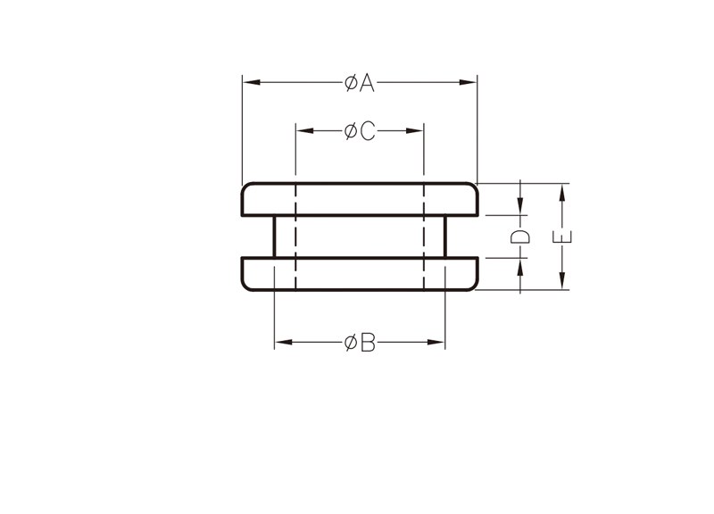 Vibration Absorption Screw Grommet (ODxID) 11.0×6.0mm. Mounting Hole dia. Ø8.0mm. Panel Thickness2.0mm. Material TPE. Color Black or Blue. Available in Shore Hardness A45 and A55.