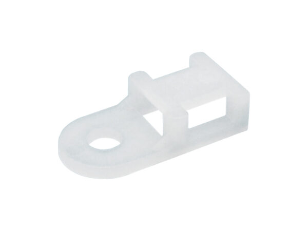 Low Profile Cable Tie Mount 19.0×9.52mm Screw or Rivet Mount. Height 4.95mm. For Max. Cable Tie width 4.95mm. Screw hole dia. Ø4.3mm. Material Nylon 66. Available in Natural or Black