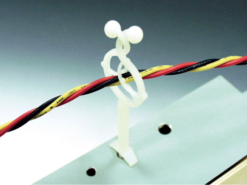 Push Mount 32.1mm Stand-off Twist Lock. Webbed Design. Max. Bundle dia. Ø20.5mm. Mounting hole dia. Ø4.8-5.0mm. Panel Thickness 0.5-2.3mm. Material Nylon 66. Available in Natural or Black. Reusable and releasable for easy wire bundling. UL Certified