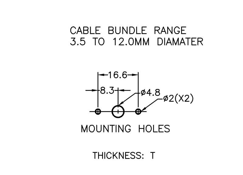 Push Mount 39.4mm Stand-off Twist Lock. Webbed Design. Bundle dia. Ø3.5-12mm. Mounting hole 4.8mm. Panel Thickness 0.8-2.0mm. Material Nylon 66. Available in Natural or Black. Retention Pins avoid rotation of the Twist Lock