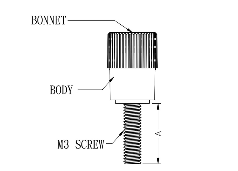 Thumb Screw Metric M3 PA66 with Phillips or Cross Head. Thread Length 5.0mm Head Ø 11.0mm