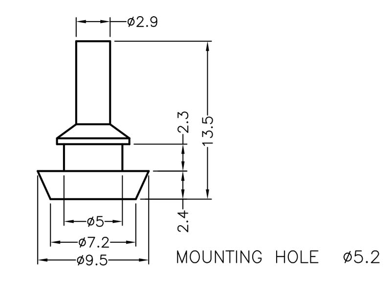Push In Rubber Foot. Hole Ø5.0mm Panel Thickness 2.3mm Surface Ø9.5mm.The push-in design enables tool-free, quick installation for both temporary and permanent use.