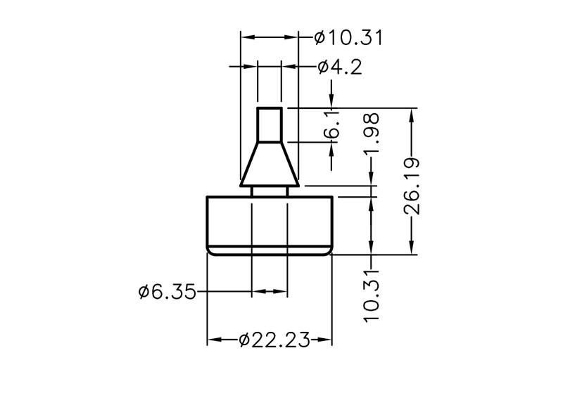 Push In Rubber Foot. Hole Ø6.35mm Panel Thickness 1.98mm Surface Ø22.23mm.The push-in design enables tool-free, quick installation for both temporary and permanent use.