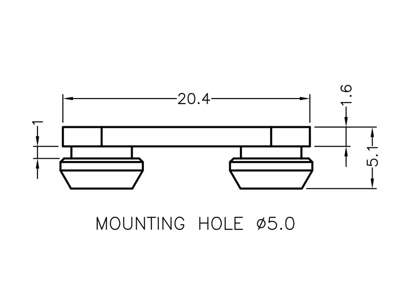 Thermoplastic Rubber (TPR) Foot Ø20.4×10.6×1.6mm for double Push Mount Ø5.0mm with a Centerline of 14mm. Panel Thickness 1.0mm
