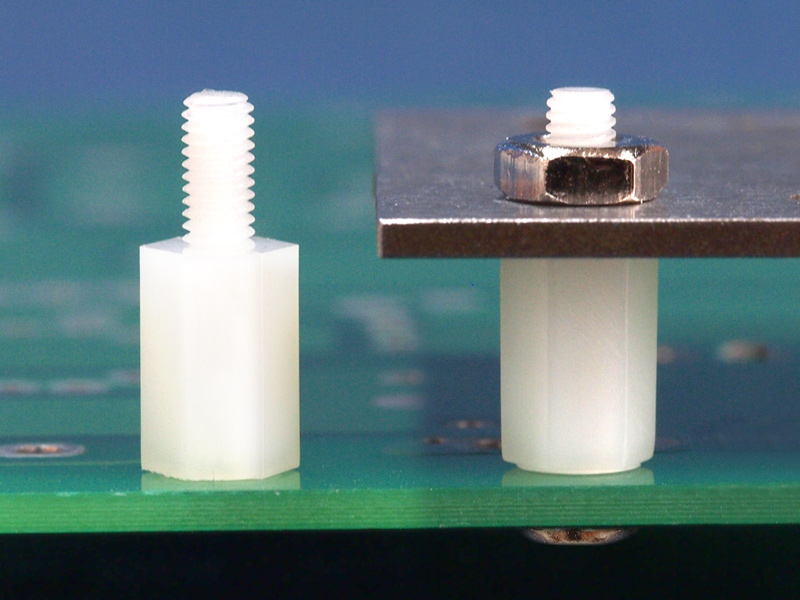 M3 hexagonal nylon spacer; male/female. Spacer body length is 14 mm.