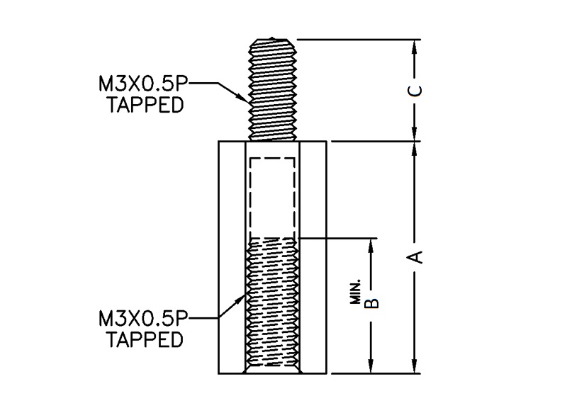 M3 hexagonal nylon spacer; male/female. Spacer body length is 45 mm.