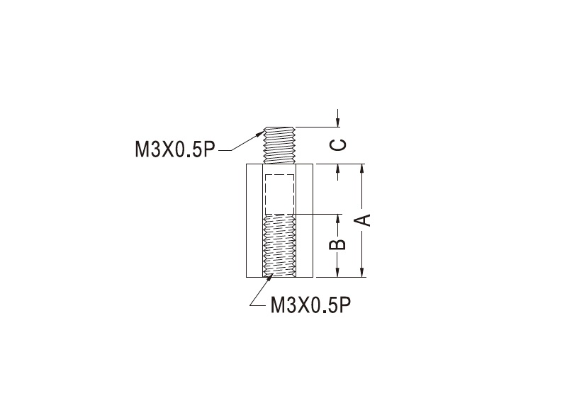 M3 hexagonal nylon spacer; male/female. Spacer body length is 6 mm.