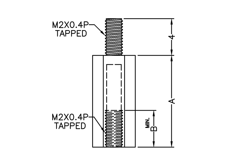 M2 metric hexagonal nylon spacer; Male/Female. Spacer body length is 27 mm.