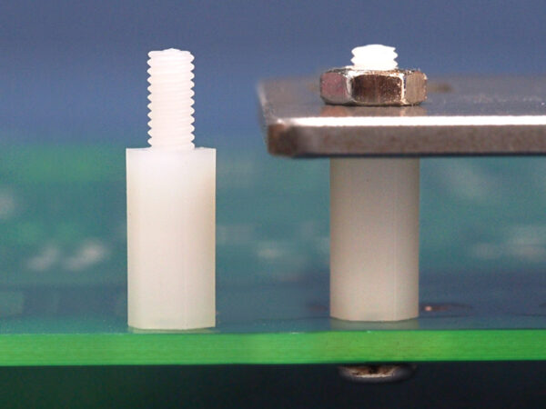 M2.5 metric hexagonal nylon spacer; Male/Female. Spacer body length is 6.0mm.