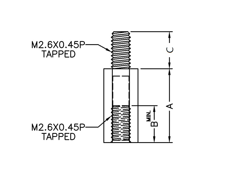 | Part no. | Material | Color | A Length | B Tap Depth | C Tap Length | Package |
