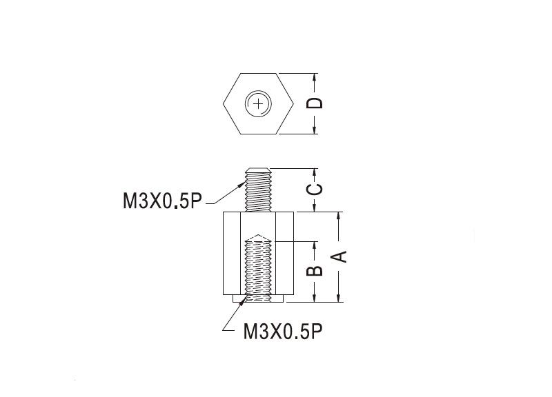 M3 hexagonal nylon spacer; male/female. Spacer body length is 10 mm.