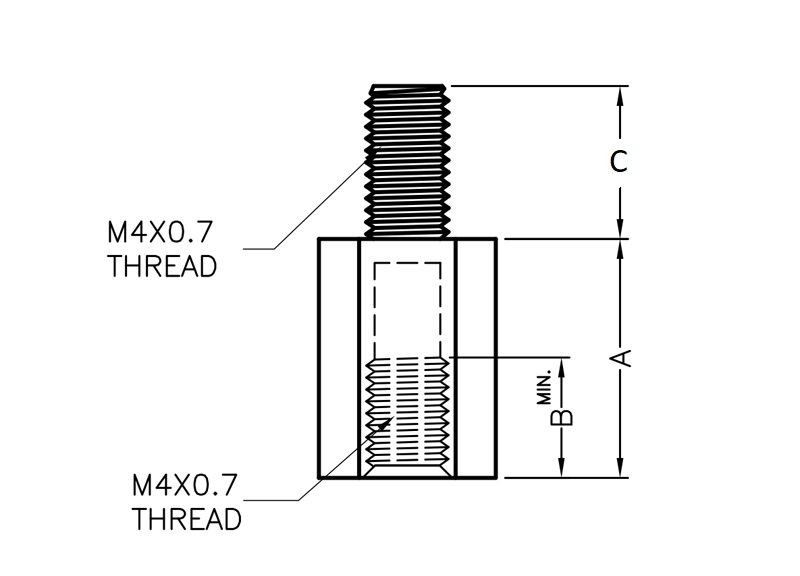 | Part no. | Material | Color | A Length | B Tap Depth | C Tap Length | D Hex Size | Package |