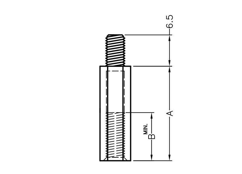 M4 hexagonal nylon spacer; male/female. Spacer body length is 55 mm.