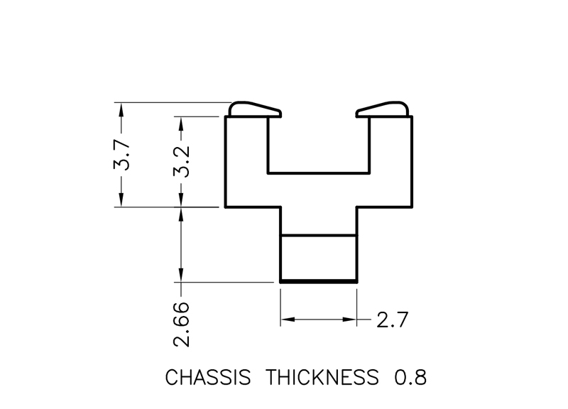 Thermistor Screw Mount Housing. Screw hole dia. 3.2mm. Material PBT. Color Natural. Flame Class UL-94V0. Used to mount a Thermal Resistor.