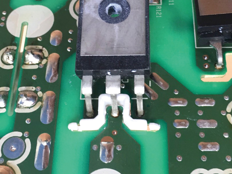 Transistor Spacer Rectangular. Nylon 66. Color Natural/Black. Provides protection for the transistor lead wires against short circuits.