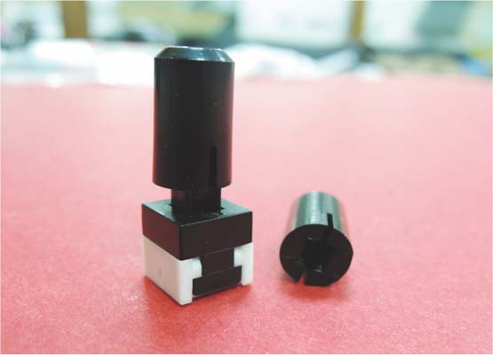 Tactile Switch Cap Round. Used as a cap for Tact switches. Material Nylon 66 + ABS. Color Natural/Black